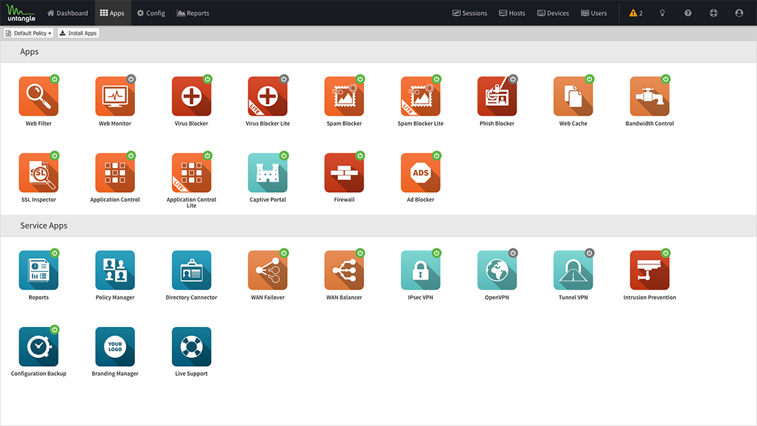 Designed specifically for organizations with limited IT resources and budgets, NG Firewall provides a browser-based, responsive and intuitive interface enabling you to quickly gain visibility into the traffic on the network. From content filtering to advanced threat protection, VPN connectivity to application-based shaping for bandwidth optimization, NG Firewall delivers a comprehensive, enterprise-grade network security platform for organizations in any industry.